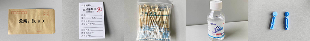 准备一次性采血针、酒精,棉签、采集卡(或医用消毒纱布、干净卫生纸)及标记有父、子、母等被鉴定人身份信息的信封。