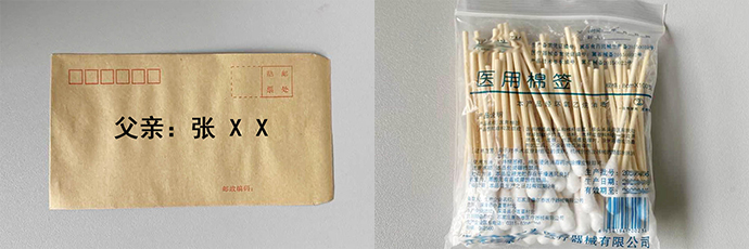 1、在干净的信封上做好标记,记录样本采集日期以及样本身份与姓名(如:父亲);