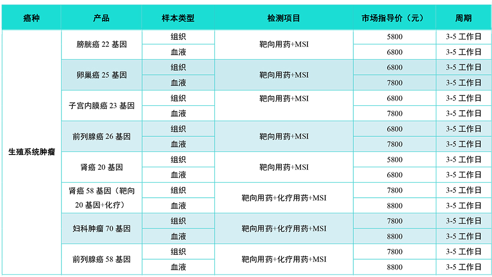 生殖系统肿瘤基因检测检测项目主要分靶向用药+MSI和靶向用药+化疗用药+MSI两种方式